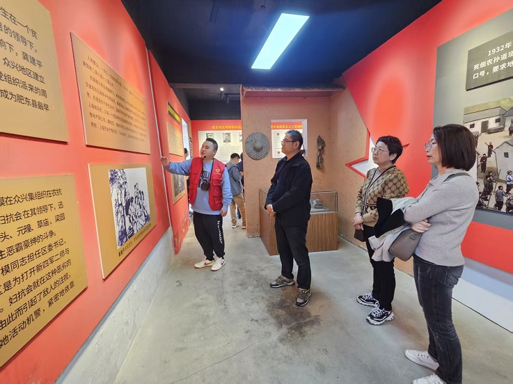 东乡支部展陈中心作为合肥市重要红色教育基地,系统展现了皖中地区早期党团组织的创建历程与革命先辈的奋斗史诗。在讲解员引导下,教师党员们依次参观了“肥东第一面党旗升起地”“农民运动兴起”“抗日救亡宣传”等主题展区,通过泛黄的历史照片、珍贵的革命文物和详实的文献资料,沉浸式感悟了1926年中共合肥东乡支部成立以来,共产党人在江淮大地播撒革命火种、带领群众奋勇抗争的峥嵘岁月。大家纷纷表示,东乡支部作为皖中地区最早的党组织之一,其坚韧不拔的斗争精神和一心为民的革命情怀,为新时代教育工作者提供了宝贵的精神滋养。