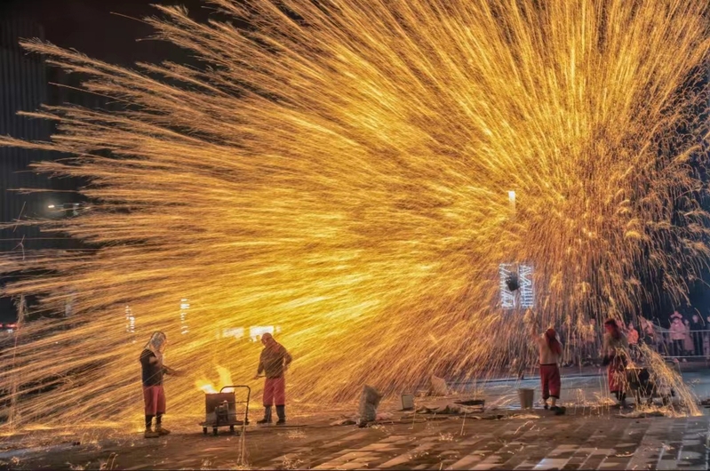 街边的装饰、圆桌的团聚,是因为新春佳节的到来,更是因为祖国的繁荣富强,才有老百姓的安居乐业。超市备货、集市采购,极富年味的庙会等等,年味在热火朝天的准备中愈加浓烈。街里巷间人山人海,处处洋溢着欢声笑语,舞狮、打铁花等非遗节目轮番上演。铁树银花落,万点星辰开,是中国非遗文化传承的极致浪漫,这是人们在新年的美好祈福。