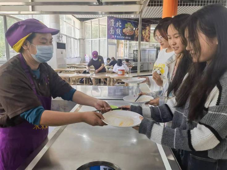 参与同学在食堂帮忙整理递送餐盘,并在餐盘回收处帮忙清理餐具;此外每个人都承担了‘光盘行动大使’的角色,及时制止粮食浪费的现象,引导同学们重视粮食安全,弘扬节约美德。