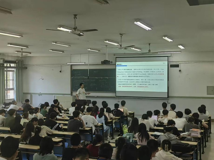 7月21日,安徽大学朱家明副教授为学员们作题为“赛题讲解与提高”的讲座。讲座中,朱老师首先回顾了近年来数学建模竞赛中的经典赛题和热点问题;随后结合自己的教学和科研经验,对如何高效、准确地解决这些问题进行了深入讲解。他强调了建模思路的重要性并分享了自己在解题过程中的一些心得和体会;同时针对学员们在建模过程中可能遇到的困难和挑战提出了具体的解决方案和建议。
