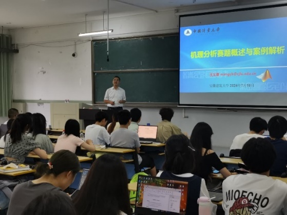 7月16日,中国计量大学数学建模总教练王义康教授为学员们作题为“机理分析赛题概述与案例解析”的讲座。他首先介绍了机理分析赛题的基本概念、分类及重要性;随后通过一系列经典案例的解析,详细展示了如何运用数学方法和模型对实际问题进行机理分析;最后针对学员们可能遇到的问题和困惑进行了逐一解答。