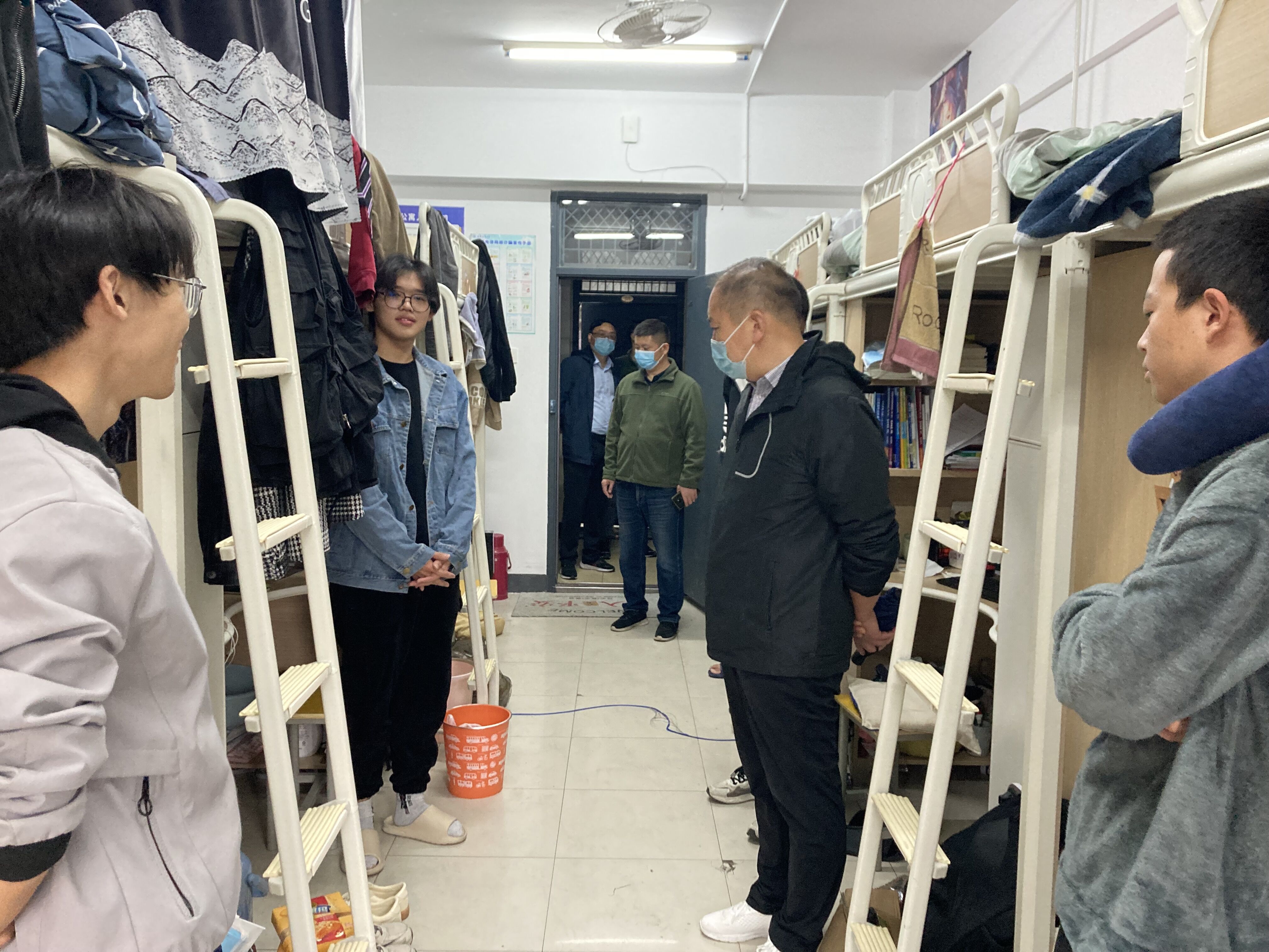 本网讯 为进一步了解我院学生线上课堂学习和宿舍生活情况,确保“停课不停学”教学质量,10月26日上午,环能学院领导以及各年级辅导员深入学生宿舍查看学生线上学习情况,与学生亲切交谈,了解学生的状态,为学生送去关心和问候。