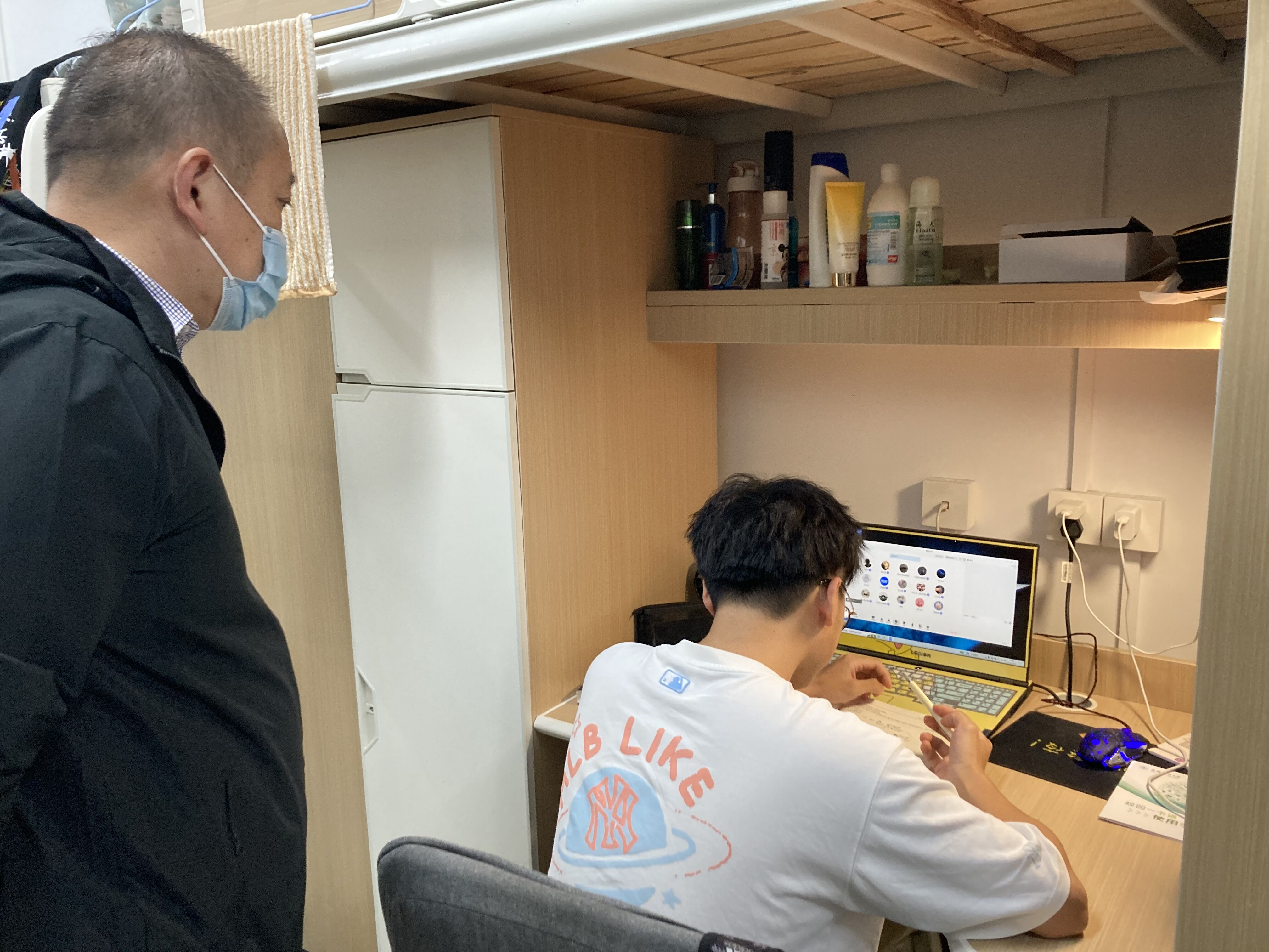 环能学院党委书记戴前宏、院长谢发之带领学院领导班子成员、辅导员们走访各个宿舍,围绕着学校的疫情防控工作,给同学们做深入的解释和引导,督促学生自觉遵守各项规定,主动做好个人防护。院领导和辅导员们同时查看了学生网课情况,询问同学们线上学习感受,激励学生要保持学习热情,强调在宿舍也要有良好的学习状态、一定自律、切勿懈怠。学院领导也随着师生进入了线上教学的课堂,“跟”协助,“巡”服务,开启“线上跟岗巡课”护航模式。